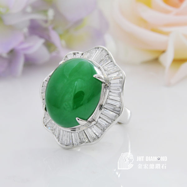 天然蛋面翡翠鑽戒 31.484ct
