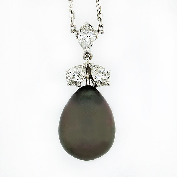 天然珍珠鑽石墜鍊-D:0.61克拉 18K