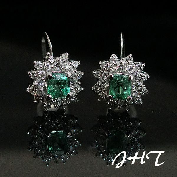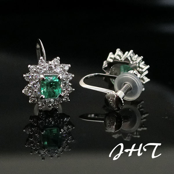 天然祖母綠鑽石耳環(附證書)