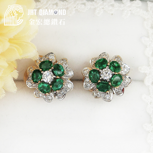 天然祖母綠花朵鑽石耳環 E:2.03ct
