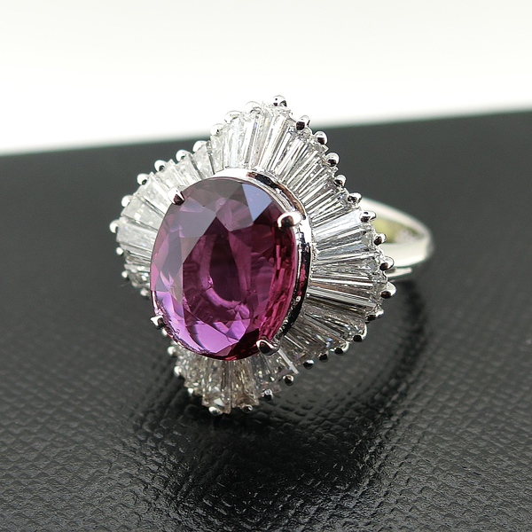 天然紅寶鑽石戒指-附證書-R:3.735ct-D:2.44ct