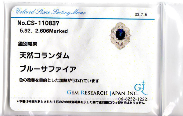 天然藍寶鑽戒/S:5.92/D:2.606ct/PT900/附證